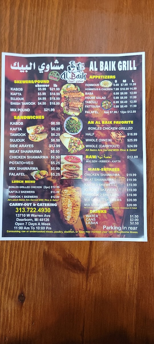 Welcome to Al Baik Grill, a gem nestled in Dearborn, MI, specializing in authentic Middle Eastern and Mediterranean cuisine. Their menu boasts a delightful array of options, focusing on fresh, bold flavors that are sure to tantalize your taste buds.
